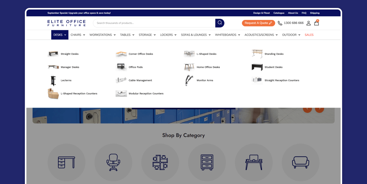 - Out-dated design: The site no longer reflected Elite Office Furniture’s reputation as a premium office furniture brand, making it harder to build trust and stand out in a competitive market.