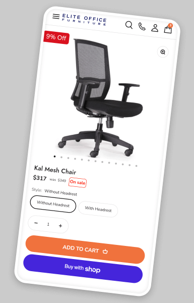 Elite Office Furniture’s previous website was built on a vintage Shopify theme, which limited flexibility and performance. The team faced several challenges:
